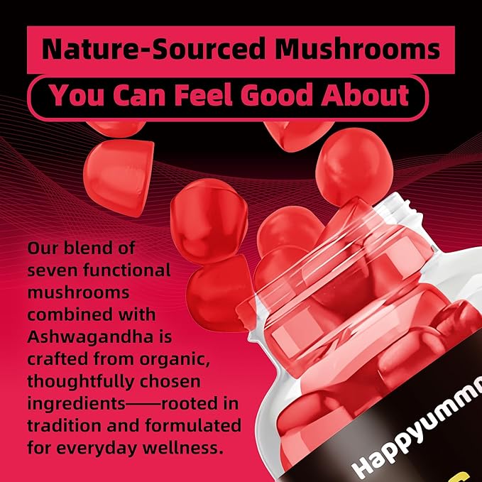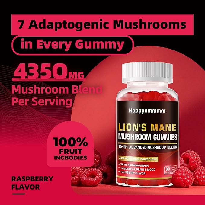 - [Free 10x Fungal Fusion] - Happyummmm expertly formulated the world's very first sugar free blend of 10 carefully selected mushroom extracts in a gummy form. Our powerful 10-mushroom complex includes the fruiting body of Maitake, Shiitake, Lion's Mane, Reishi, Cordyceps, Chaga, Turkey Tail, White Button, Black Fungus, and Royal Sun Extract for a comprehensive wellness approach.
