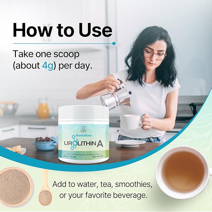 - Recommended Usage: Take one scoop (about 4g) per day. Easily add to water, tea, smoothies, or your favorite beverage for a convenient and enjoyable way to include Urolithin A in your routine