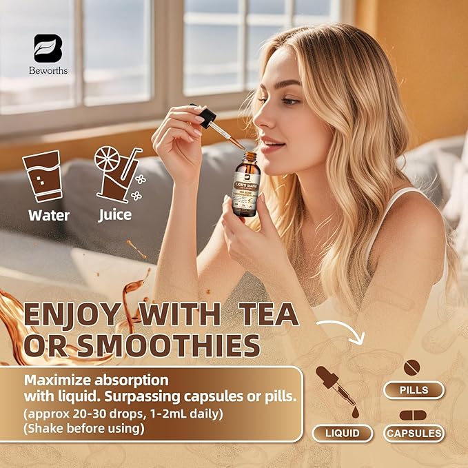 - 【Tasty, Easy-to-Take Liquid Drops】– Skip bitter pills! Enjoy a natural peach-flavored lion's mane liquid that kids and adults love. Take 1ml daily (recommended dosage) under the tongue, in tea, or smoothies.