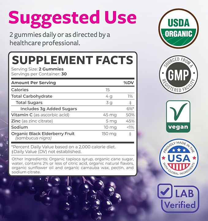 - Clean Elderberry Supplement: We are proud to offer USDA organic elderberry vitamins made with vegan non-GMO ingredients made & tested in advanced American labs so you can supplement in confidence