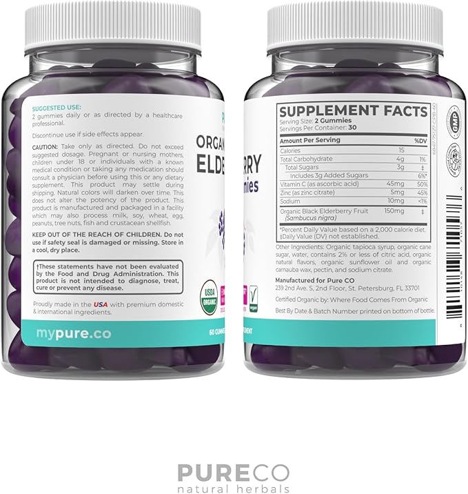 - Order Today: Try a bottle of our Zinc Vitamin C and Elderberry organic gummies to experience the benefits of this highly touted antioxidant blend and see why PureCo is a trusted name in wellness