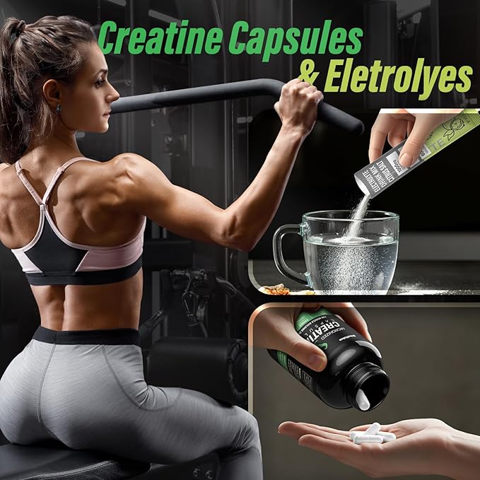 - 【Premium Combo Set】Bikayalue carefully prepares a combination set of creatine capsules and electrolyte powder for you.These creatine capsules are gluten-free, non-GMO, unflavored, have no pigment, and are sugar-free, so you can have them without burden.