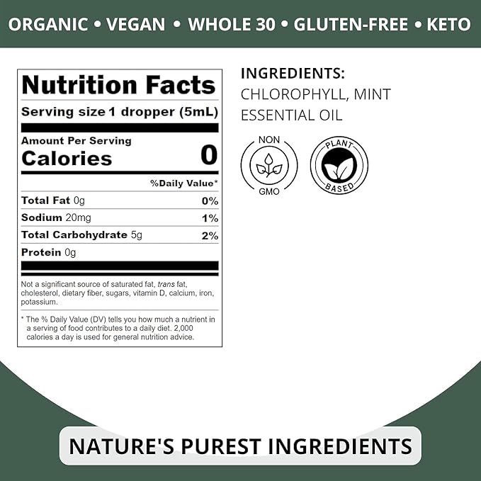 - SUGAR-FREE DIGESTIVE BOOST - Enjoy the benefits of organic chlorophyll without any added sugar or calories. These drops are specially formulated to support digestion, promoting a healthy gut and optimal digestive health. By incorporating chlorophyll liquid drops into your routine, you can provide your body with an incredible internal boost, helping you feel balanced and energized throughout the day.
