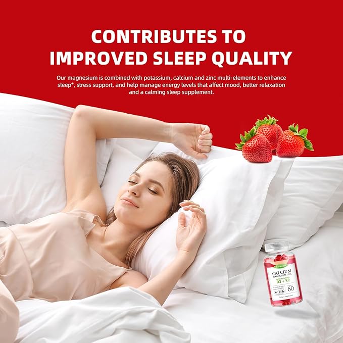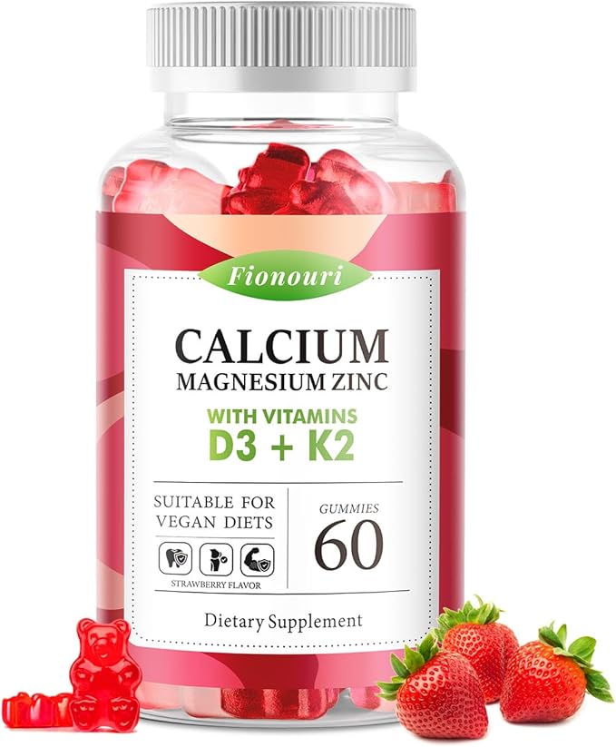 Calcium Magnesium Zinc Gummies with Vitamin D3 & K2 - High Potency Enhanced Absorption -60 Strawberry Gummies Flavored