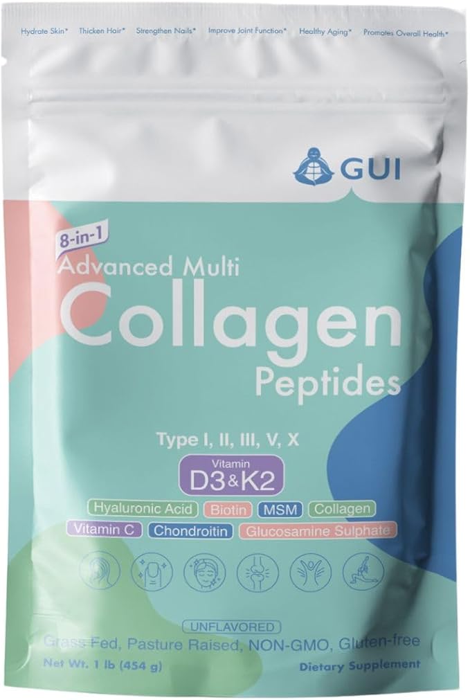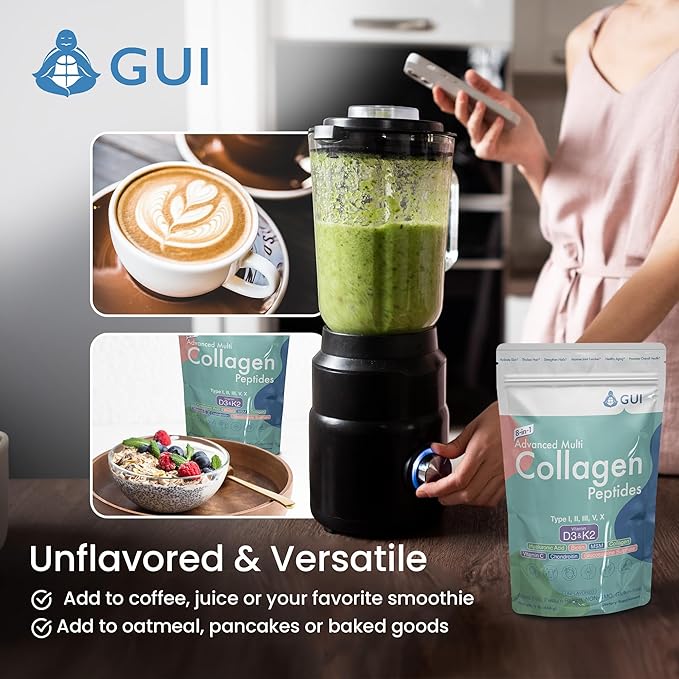 - We offer you more than just collagen. Our powerful unflavored blend provides you with a product that helps make you feel young again and maintain a healthy youthful appearance. GUI's 8-in-1 blend WITH Vitamin D3 & K2 is the first of its kind to be introduced to the market.