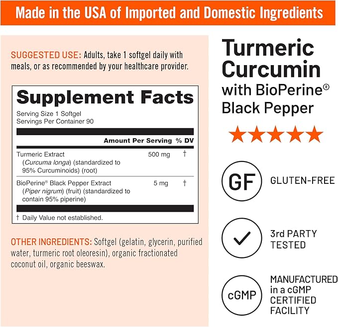 - 3rd PARTY TESTED, QUALITY ASSURED: NatureWise Turmeric Softgels are 3rd party tested for purity and efficacy and manufactured in the USA with high-quality ingredients from around the world in a cGMP-certified facility.