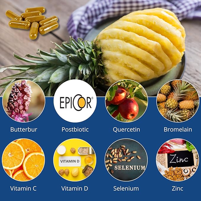 - Premium, Multifunctional Ingredients: AllerEzy features a blend of premium ingredients, including PA-free butterbur, EpiCor, Quercetin, and Bromelain. This multifunctional formula supports sinus comfort and provides antioxidant benefits, helping to protect against oxidative stress and promote overall respiratory wellness.