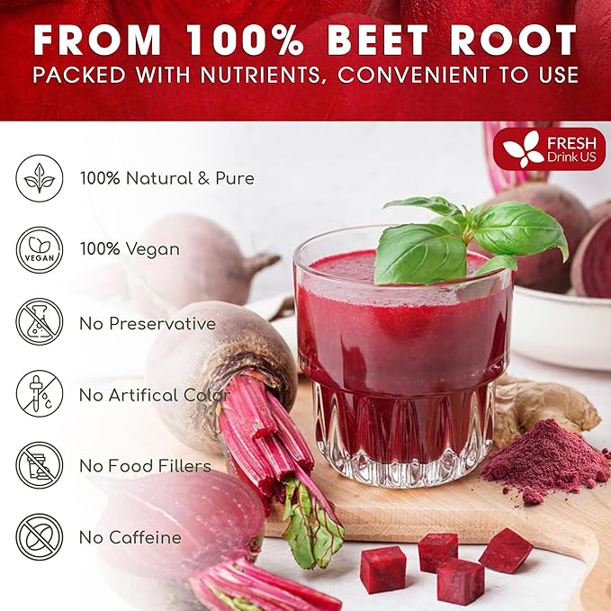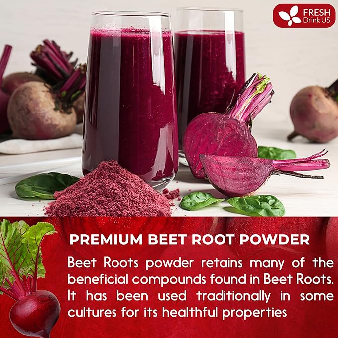 FreshDrinkUS, Premium 20oz Beet Root Powder, 100% Natural and Pure from Beet Root, Beetroot Powder Perfect for Smoothies, Energy Booster, Soups and Sauces. No Additives, No Gluten, No Sugar, Vegan
