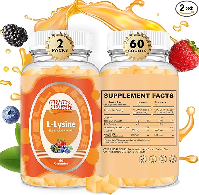 - Well&Whole L-Lysine 1000mg Gummies: Each 2 gummies contains 1000mg of L-Lysine with vitamin B12.