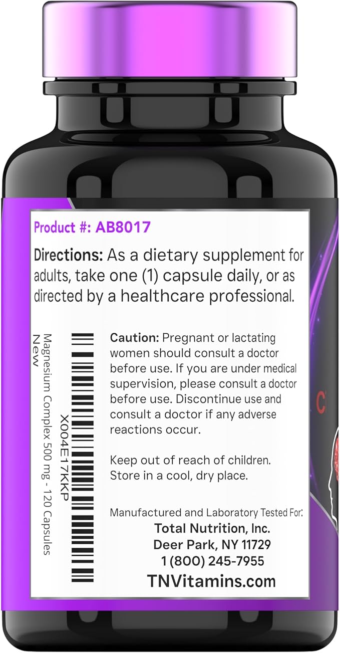 - ✔️ TNVitamins Triple Magnesium Complex Supplement 500mg - 120 Capsules