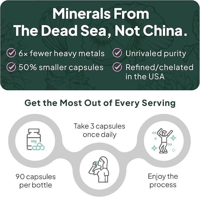 - Sourced from the Dead Sea: Our magnesium and zinc are carefully extracted from the most mineral-rich oceans in the world and then chelated in Utah. Never touching China, the result is a formula boasting unrivaled purity, delivering maximum results and unmatched absorption.