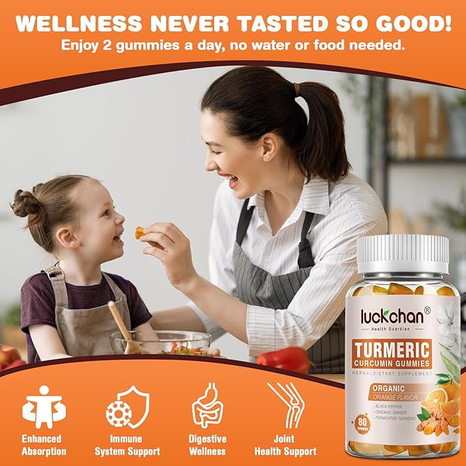 - Anti-Inflammatory Supplements: Curcumin is a natural anti-inflammatory compound with a strong anti-inflammatory effect. LUCKCHAN Ginger turmeric supplements is rich in curcumin. You can obtain curcumin by chewing gummy to reduce inflammation, help relieve joints discomfort, and improve your health.