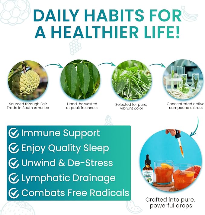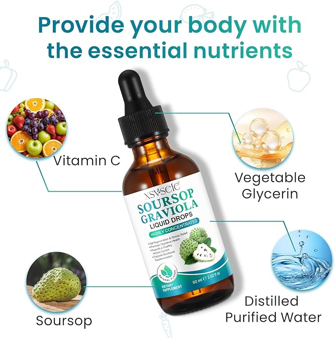 - Health support: Soursop drops helps nutrients to fortify cells, bolster the immune system. It supports cell health and is rich in fiber and antioxidants,natural ingredients and vegan friendly, something for everyone