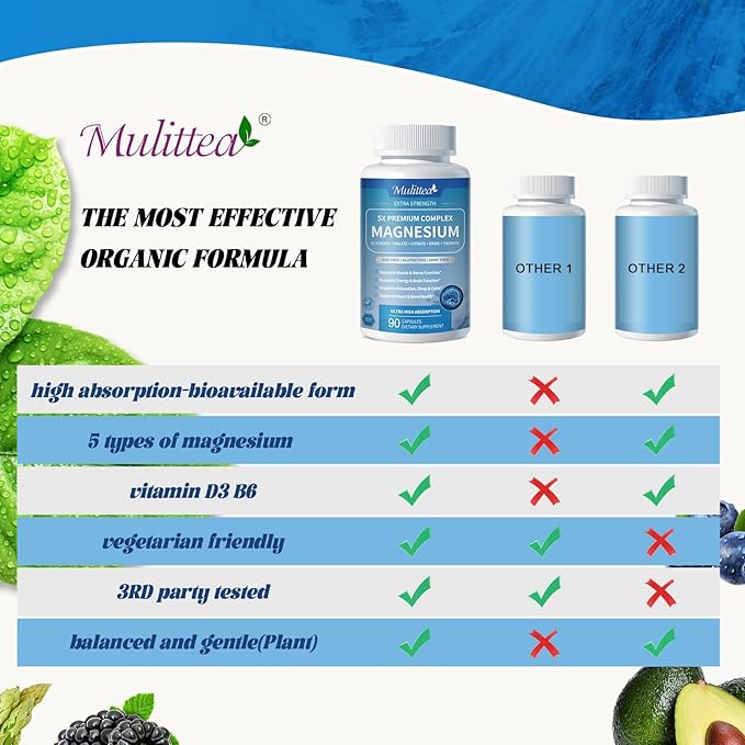 - 5 BIOAVAILABLE FORMS OF MAGNESIUM: If you’re looking for a magnesium-glycinate complex supplement, we’ve created a comprehensive solution by combining 7 types of magnesium in one convenient daily magnesium supplement for both women and men – magnesium glycinate, magnesium citrate, magnesium malate, magnesium taurate, magnesium chelate.