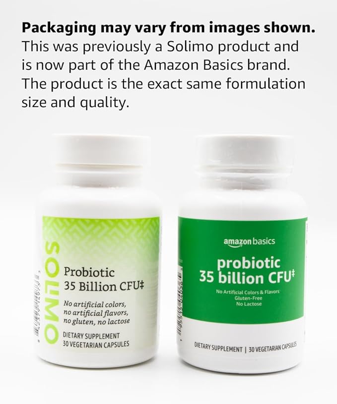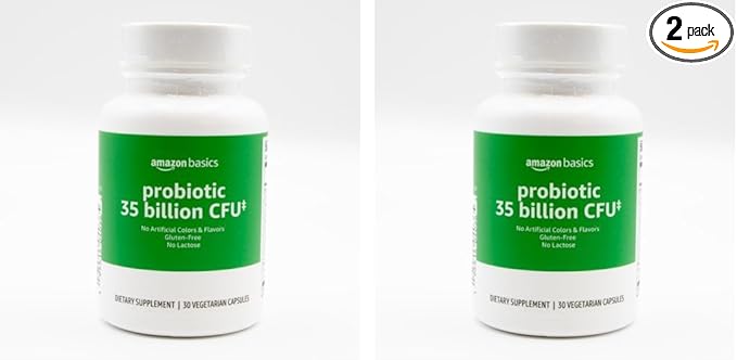 Amazon Basics Probiotic 35 Billion CFU, 8 Probiotic Strains with Prebiotic Blend, Supports Healthy Digestion, 30 Vegetarian Capsules, 1 Month Supply 30 Count (Pack of 2) (Previously Solimo)