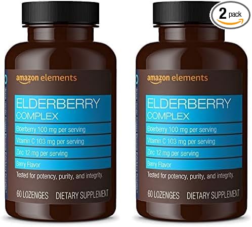 Amazon Elements Elderberry Complex Berry Flavored Immune System Support Lozenges, Adult, 60 Count, (Packaging May Vary) (Pack of 2)