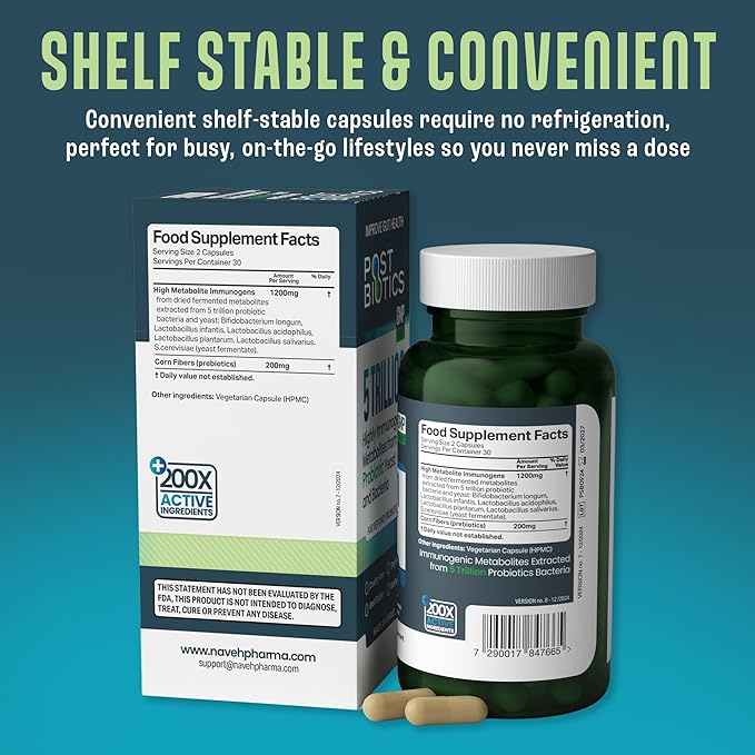 NAVEH PHARMA Adult Postbiotics Capsules for Women and Men | Postbiotics for Gut Health with 200X Ingredients Than Probiotic and Prebiotic | Supports Immunity, Digestion, Microbiome & Metabolism