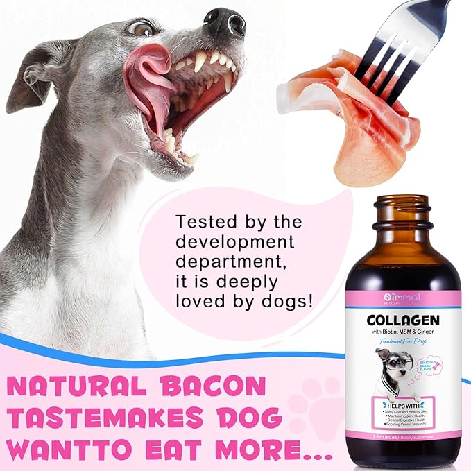 Collagen for Dogs,Liquid Collagen for Dogs,Collagen Supplement for Dogs,Collagen Boost for Dogs with Biotin, MSM & Ginger,Delicious Bacon Flavor,2 Fl Oz
