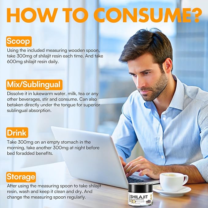 - Easy To Use, Maximum Potency: Our authentic of shilajit resin includes 3 handy measuring sticks to ensure each precise and perfect serving dose. It is also easily used, take 600 mg shilajit resin daily, just simply dissolve pure resin form of shilajit in lukewarm water or your favorite beverages. Can also be taken directly under thetongue for superior sublingual absorption. Experience the full benefits of organic shilajit for your overall wellness benefit