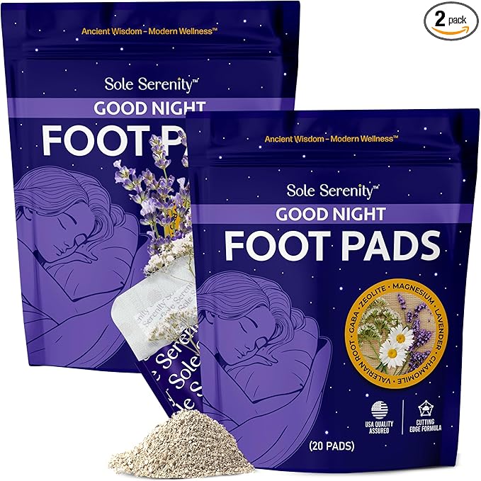 Zeolite Good Night Foot Pads with Magnesium Glycinate, Ashwagandha, Valerian Root, Lavender by Sole Serenity (2 Pack, Calm Sleep)