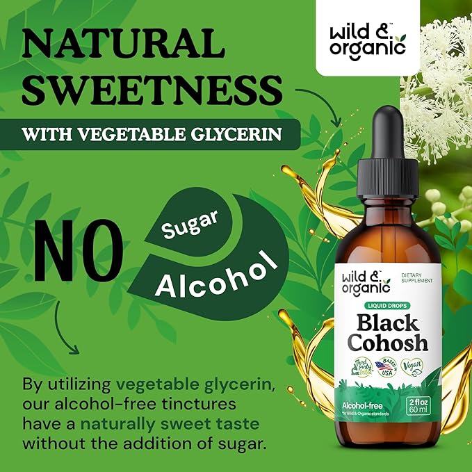 - Sweetness Without Sugar: Enjoy a pleasant supplement experience with Wild & Organic black cohosh liquid drops, which feature a naturally sweet taste. Our drops use glycerin for natural sweetness, with no added sugar.