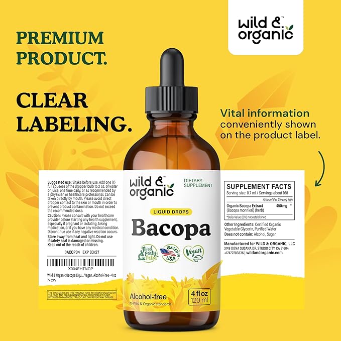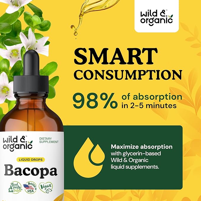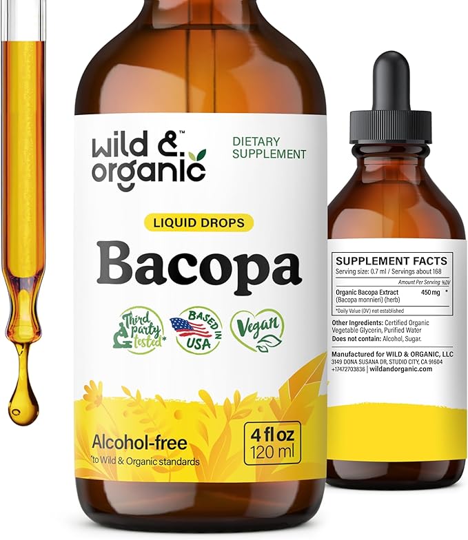 - Alcohol-Free: Wild & Organic bacopa monnieri extract liquid is vegetable glycerin-based, providing an alcohol-free tincture that is easy on digestion.