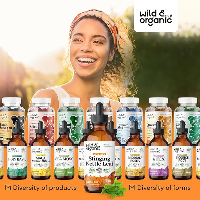 - Sweetness Without Sugar: Enjoy a pleasant supplement experience with Wild & Organic stinging nettle liquid extract, which features a naturally sweet taste. Our stinging nettle drops use glycerin for natural sweetness, with no added sugar.