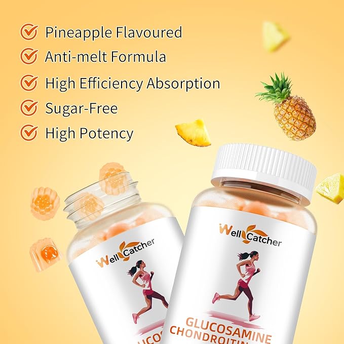 - Healthy Meets Tasty: Each WellCatcher joint support gummy is sweetened from stevia, chewing two gummies a day will support your body with a steady boost of energy without worring about the calories. Our glucosamine chondroitin complex is produced in a GMP certified facility for safety