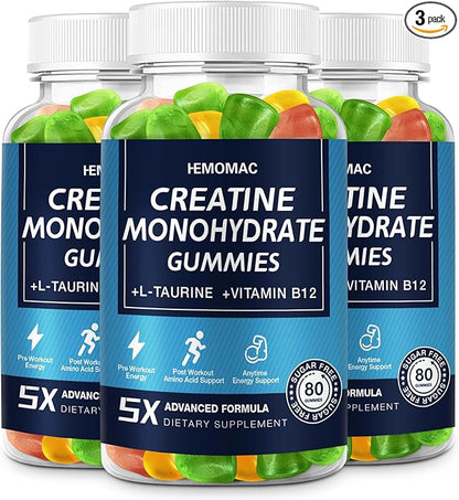 Creatine Monohydrate Gummies 5g for Men & Women, Creatine Gummy for Muscle Strength, Energy Boost, Workout Supplement, 3 Pack, Vegan
