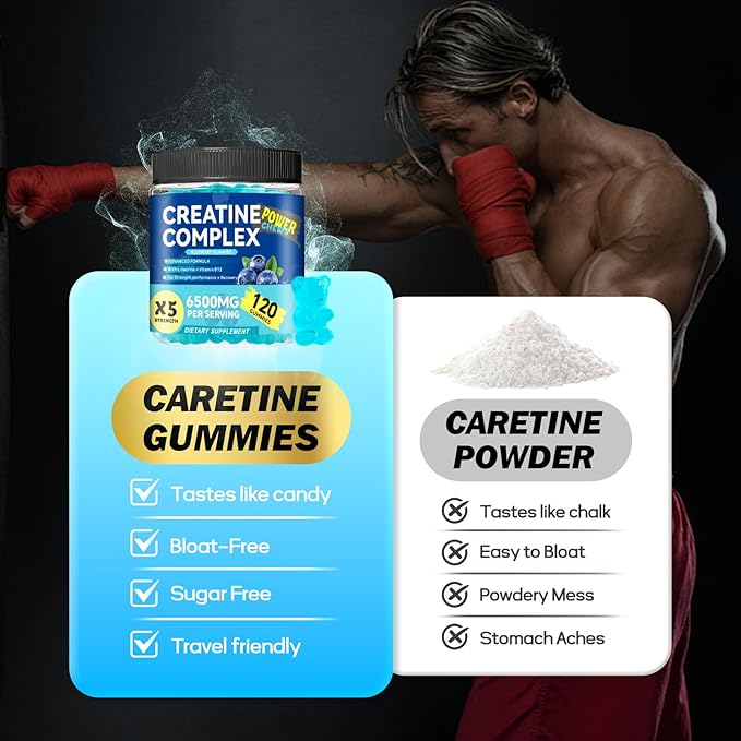 - [Premium Formula,Maximum Efficacy]: Our Creatine monohydrate gummies complex contains 6500mg pure creatine monohydrate per serving combined with L-Taurine, Betaine Anhydrous, Vitamin B12 and Alpha GPC for Maximum Benefits.
