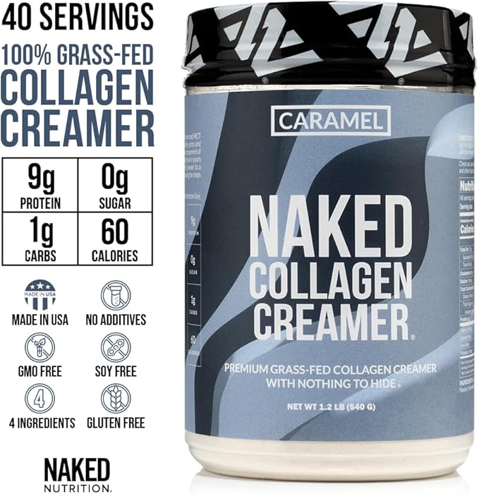 - HEALTH BENEFITS: Our diets today contain less collagen than in years past and once you hit age 30, your body also begins producing less. Naked Collagen Coffee Creamer caramel is a delicious, easy, and convenient way to support joint health, gut health, and promote youthful skin, stronger nails, and healthy hair.