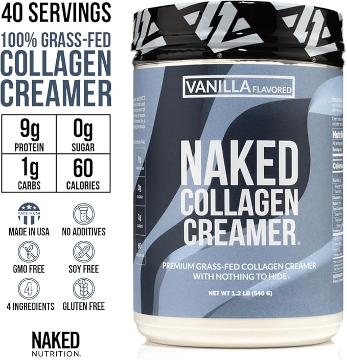 - HEALTH BENEFITS: Our diets today contain less collagen than in years past and once you hit age 30, your body also begins producing less. Naked Collagen Creamer vanilla is a delicious, easy, and convenient way to support joint health, gut health, and promote youthful skin, stronger nails, and healthy hair.