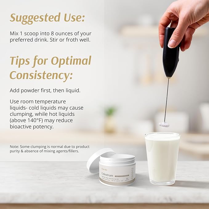 - No Additives, Just Pure Nutrition – Our unflavored colostrum powder contains no artificial additives, ensuring a clean and natural product that easily mixes into your daily beauty routine.