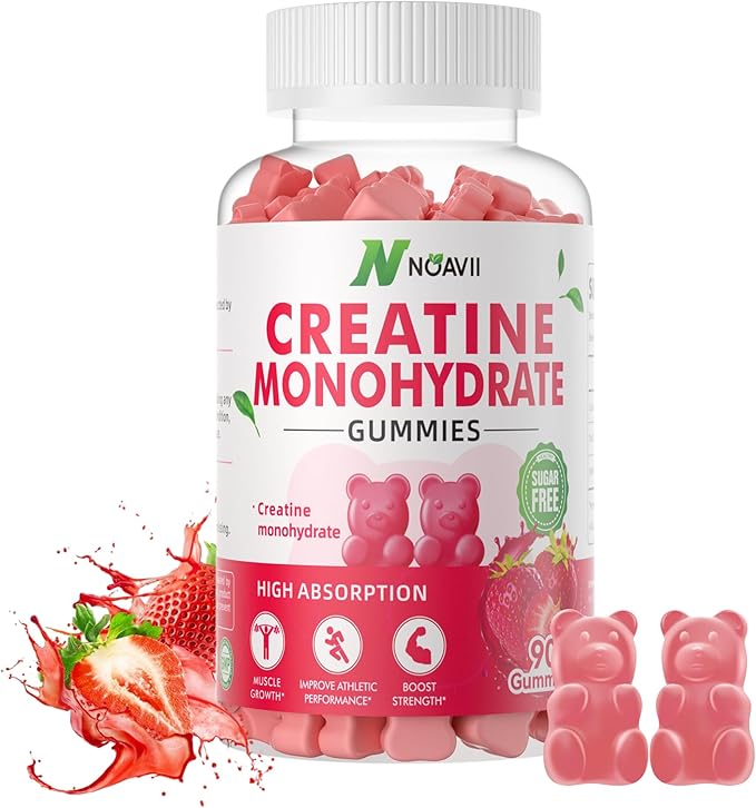 Creatine Monohydrate Gummies 5000mg for Men & Women, Chewables Creatine Monohydrate for Muscle Strength, Muscle Builder, Energy Boost, Pre-Workout Supplement-90 Strawberry Gummies