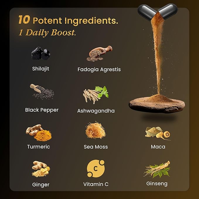 - One Capsule a Day – No Mess, No Bitter Taste!: Simplify your routine with our one-per-day Shilajit capsule—no sticky resin, no measuring, just fast-absorbing, vegan-friendly capsules for easy daily wellness.