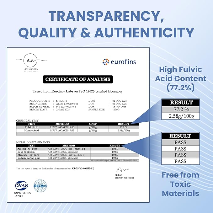- Organic Ingredients: Formulated with pure, organic Shilajit and no artificial additives or fillers.