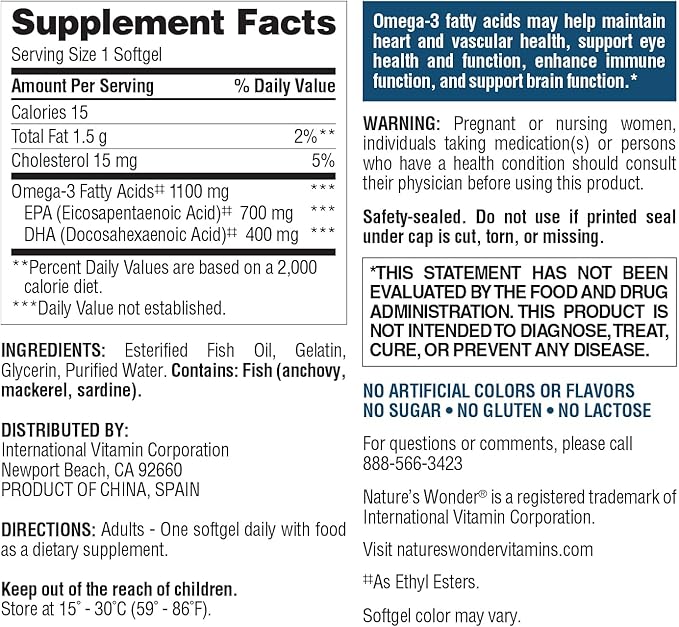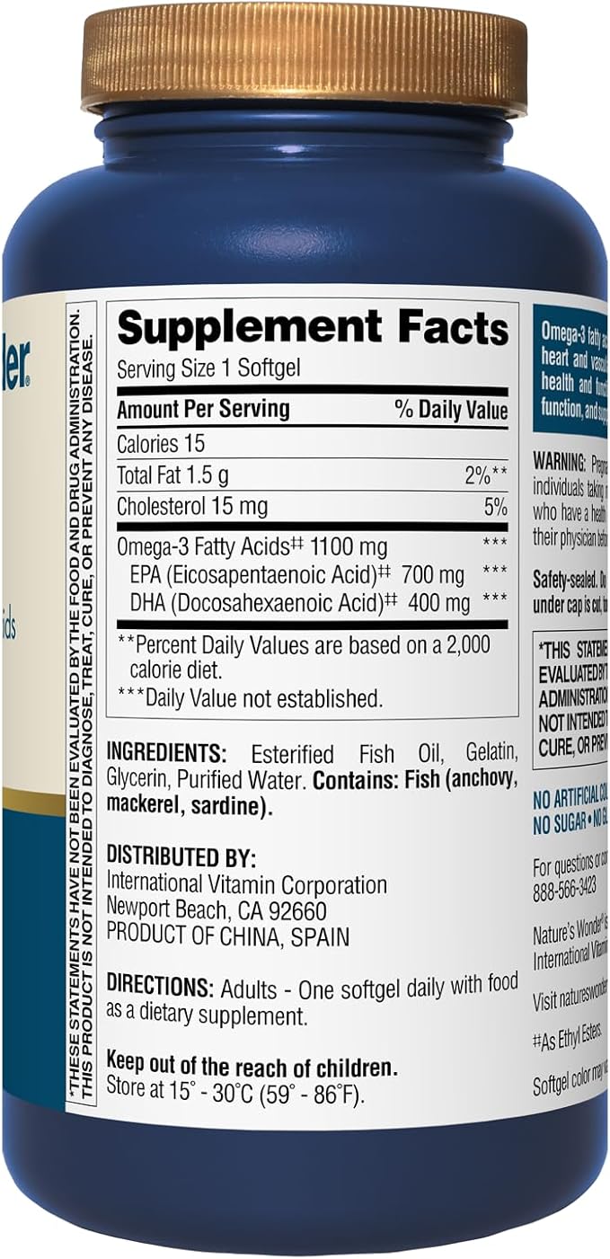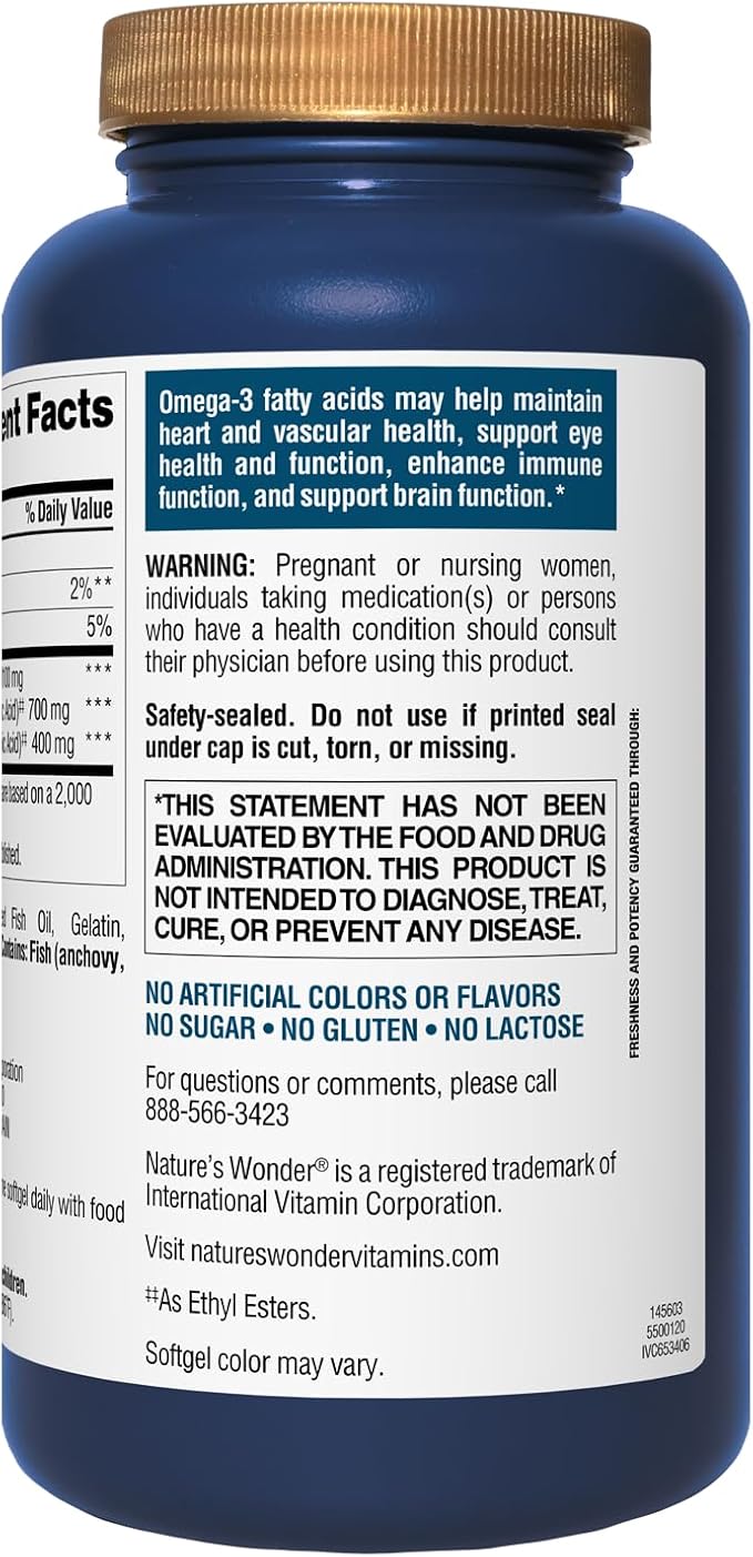 Nature's Wonder Fish Oil 1100mg Omega-3 Fish Oil Supplements for Women and Men, EPA & DHA for Healthy Joints, Heart, Immune System, 120 Day Supply of Softgels