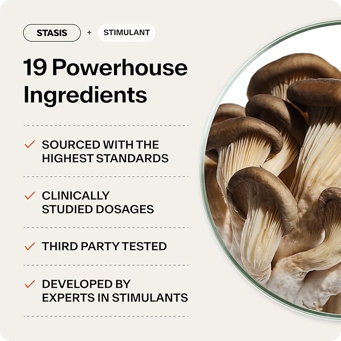 - Steady Energy and Focus - Stasis Daytime is designed to be taken with your stimulant to support you against harsh energy crashes, and promote a more stable mood. Nine Powerhouse ingredients including ashwagandha, l theanine, selenium, and saffron encourage balanced energy and focus.*