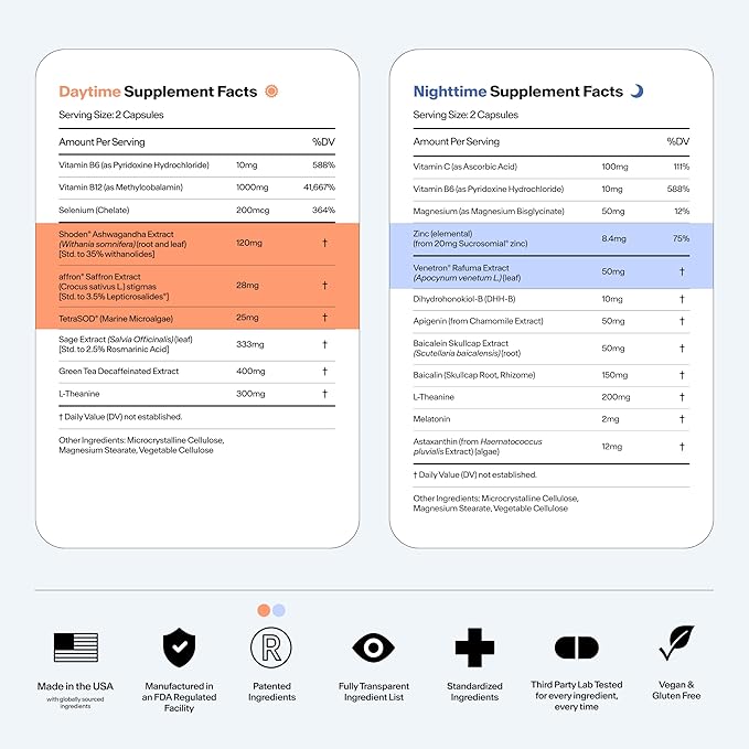 - The Day & Night Set - This two-step kit is the first supplement system designed to be paired with a stimulant. These formulas offer balanced brain support, while minimizing downsides like afternoon energy crashes, irritability, nervous jitters, and restless sleep.