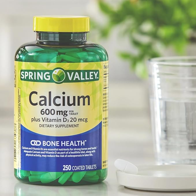 - Spring Valley Calcium and Vitamin D3 Supplement: 600 mg of calcium and 20 mcg of vitamin D3 per tablet for strong bones.