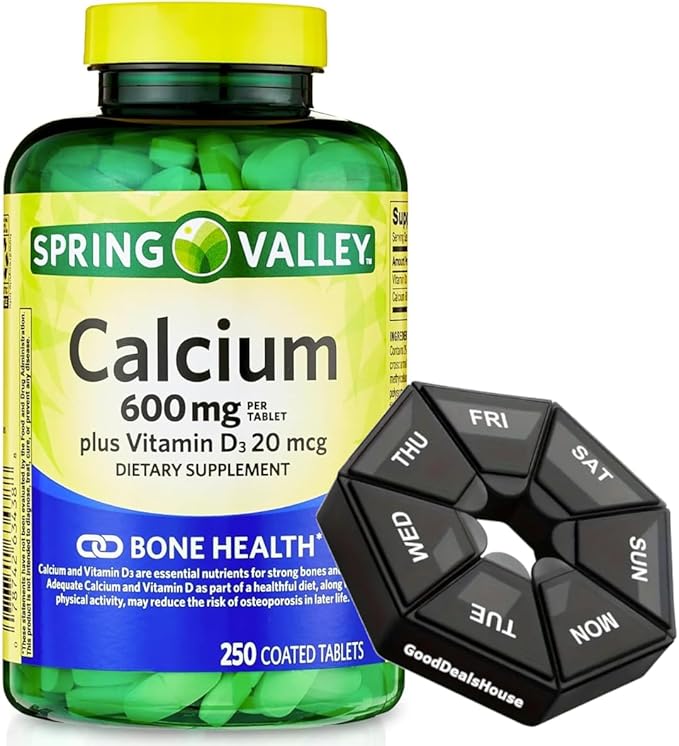 Spring - Valley Calcium 600 mg + Vitamin D3 20 mcg - 250 Count with Weekly Pill Organizer GoodDealsHouse - Bone Health Dietary Supplement Tablets
