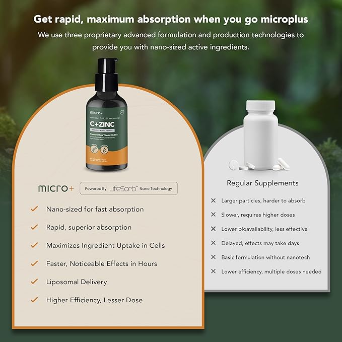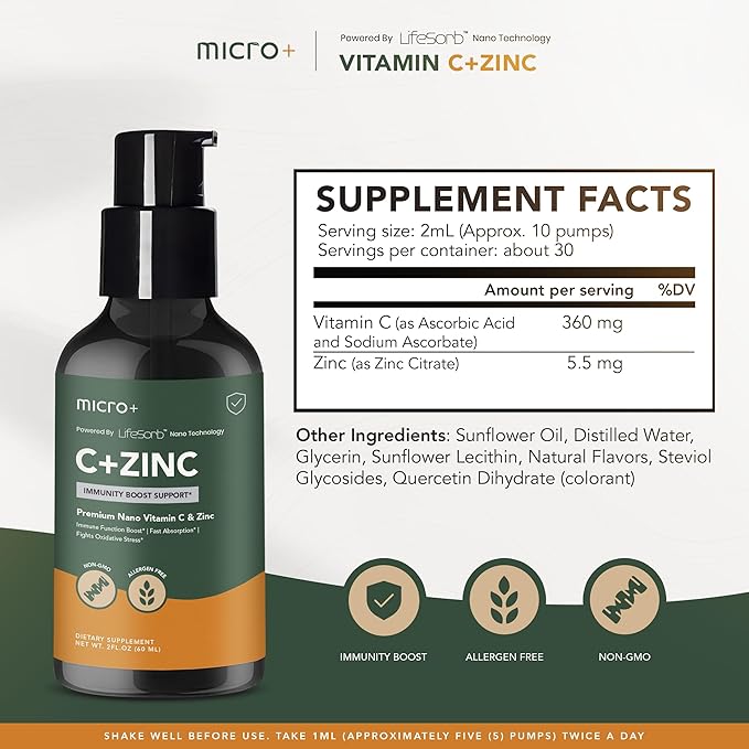 C&Zinc+ by Micro+ Advanced Immune Support Supplement – Vitamin C and Zinc with LifeSorb Nano-Technology for Enhanced Absorption