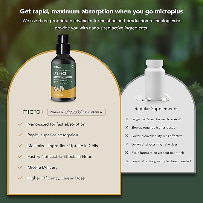 D3K2+ by Micro+ Vitamin Supplement with LifeSorb Technology - D3 K2 Supplement, Bone & Immune Health