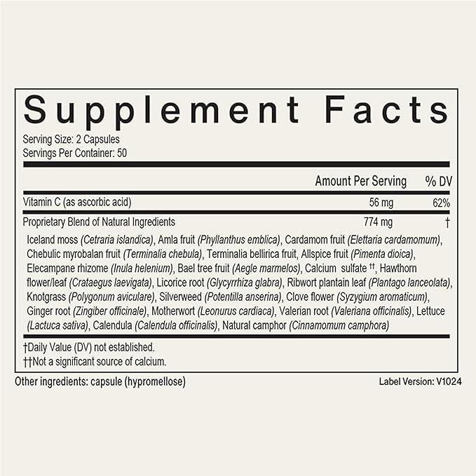 - Non-GMO, Vegan, Gluten Free & Lactose Free: The traditional Tibetan formula includes natural herbs, minerals and vitamins, such as ginger, Iceland moss, amla fruits, valerian, and hawthorn. This dietary supplement is produced under conditions that meet or exceed Good Manufacturing Practices (GMP).