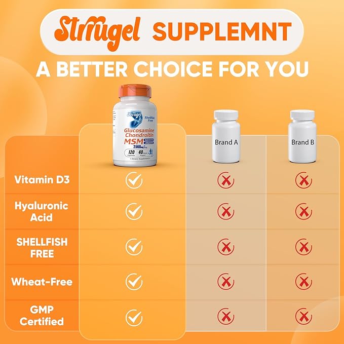 - Non-GMO, Gluten-free, Shellfish-Free, and Soy-Free. strrugel Glucosamine Chondroitin MSM capsules provide a pure and trustworthy joint-support supplement tailored to your active way of life.