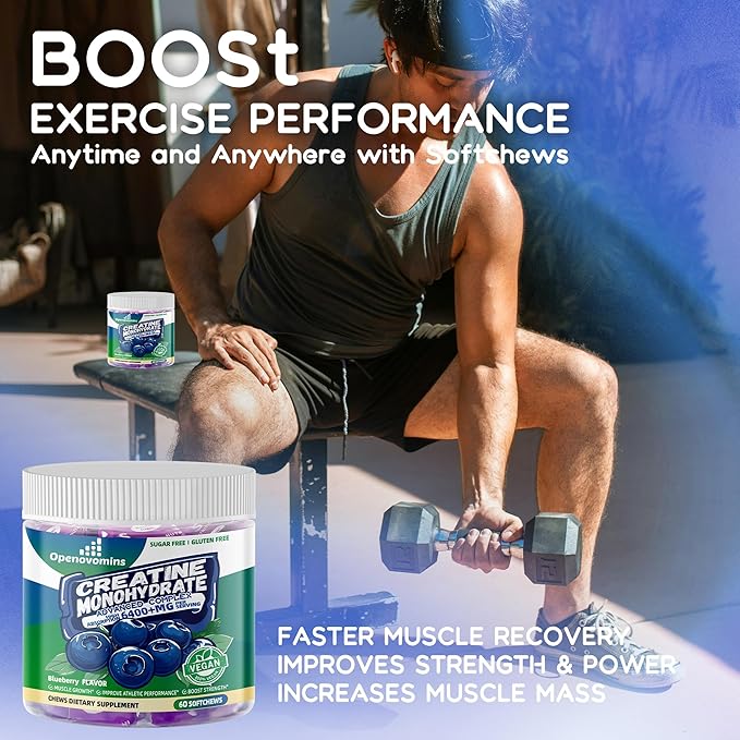 - [Premium Formula,Maximum Efficacy]: Our Creatine monohydrate Soft Chews contains 5g=2 Chews pure creatine monohydrate per serving combined for Maximum Benefits.