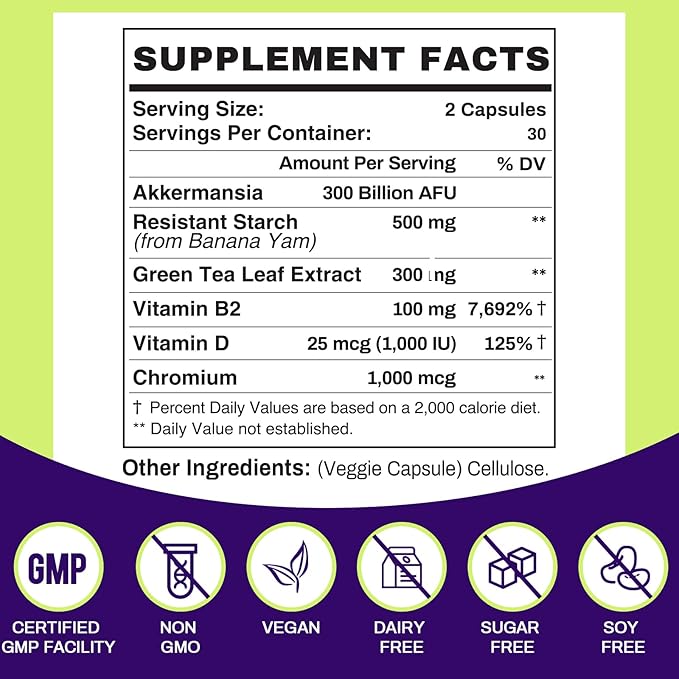 - 6-in-1 for Maximum Results: Akkermansia probiotic aims to strengthens and protects intestinal walls, Improves overall health. Vitamin B2 participates in various metabolic processes, helping to convert food into energy. Vitamin D plays an important role in the function of the immune and nervous systems. Naturally support GLP-1 production. 6-in-1 to support your daily gut health