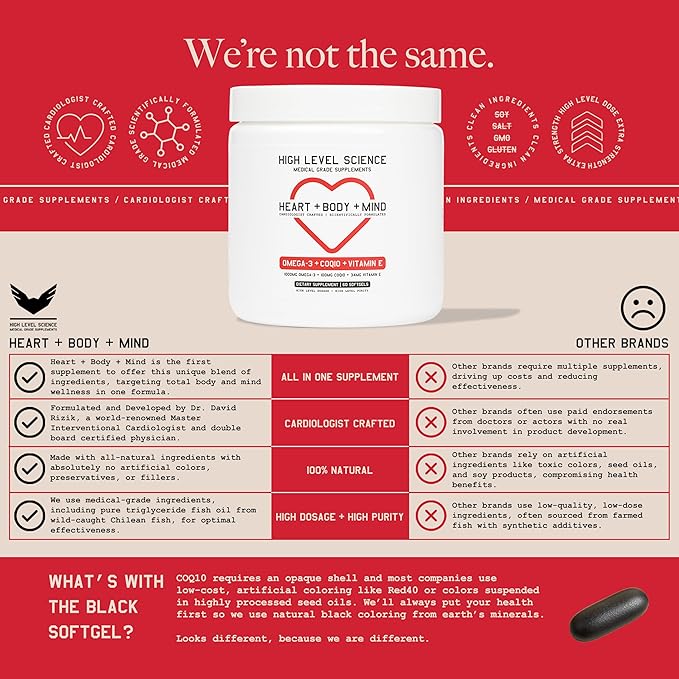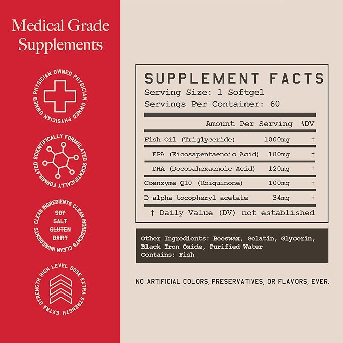 - HIGH DOSAGE AND PURITY FOR OPTIMAL WELLNESS SUPPORT: Each softgel is crafted with a high level of purity and dosage, providing 1000 mg Omega 3, 100 mg CoQ10, and 34 mg Vitamin E per serving. The ingredients are sourced with precision, including fish oil from wild caught Chilean fish, helping to ensure you get the best possible wellness support.