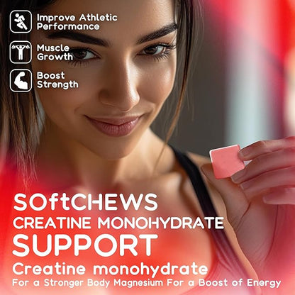 - [Premium Formula,Maximum Efficacy]: Our Creatine monohydrate Soft Chews contains 5g=2 Chews pure creatine monohydrate per serving combined for Maximum Benefits.