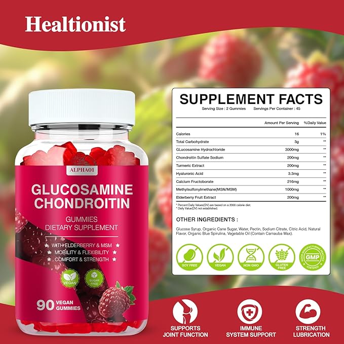 - ✔️EASY-TO-CONSUME & DELICIOUS - Our glucosamine chondroitin gummies can offer an easy (delicious) way to consume the powerful ingredients needed for joint support. and have a berry flavor pectin everyone loves, easy to chew.